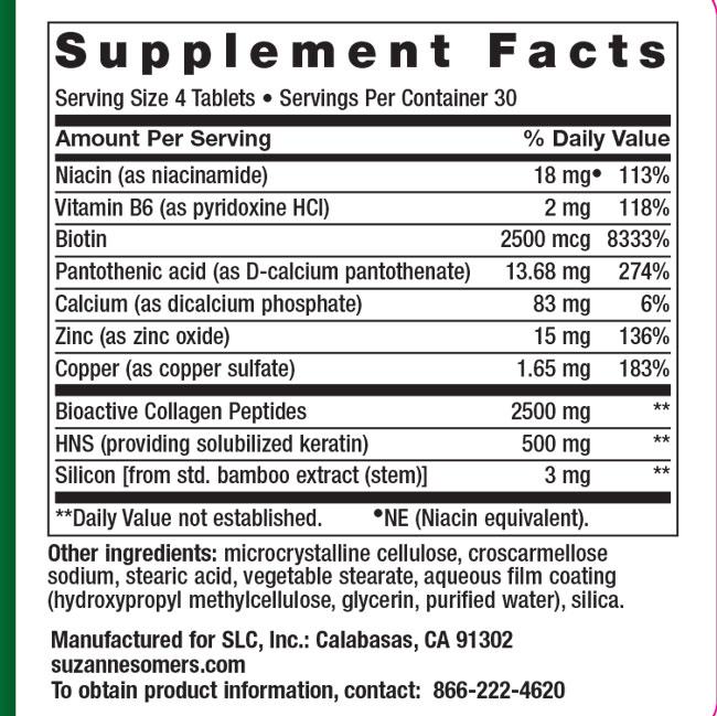 A unique, orally ingested formula packed with clinically studied nutrients that promote collagen and keratin health. These proteins keep hair, skin, and nails looking youthful, healthy, and vibrant. Ingredients such as Cynatine® HNS Plus, VERISOL® Bioactive Collagen Peptides®, and silicon and biotin will help restore beautiful hair, radiant skin, and healthy nails.